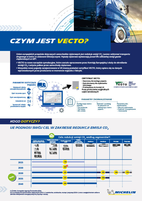 Od 2025 r. producenci będą musieli spełniać nowe cele w zakresie emisji CO2. Różne parametry, takie jak opór toczenia opon, będą nadal obliczane za pomocą narzędzia VECTO do symulacji zużycia paliwa i emisji CO2. I tutaj Michelin może pomóc.